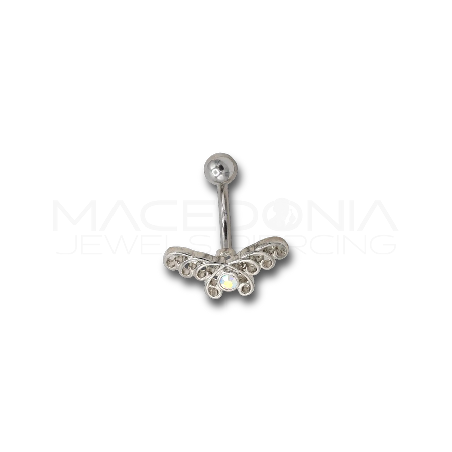Banana Ombelico in Acciaio Chirurgico 316L con Palline, Cuore a Farfalla e Zircone – Colore Argento