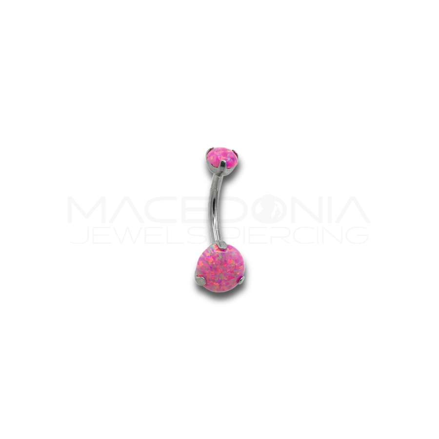 Piercing Ombelico in Acciaio Chirurgico 316L con Pietra in Opale – Colore Argento