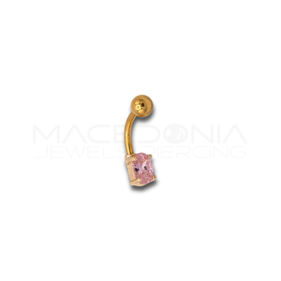 Banana Ombelico in Acciaio Chirurgico 316L Oro con Pallina e Zircone Ovale Rosa
