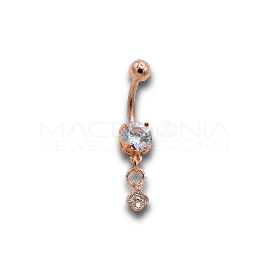 Banana Ombelico in Acciaio Chirurgico 316L con Palline, Zirconi e Pendente a Fiore – Colore Oro Rosa