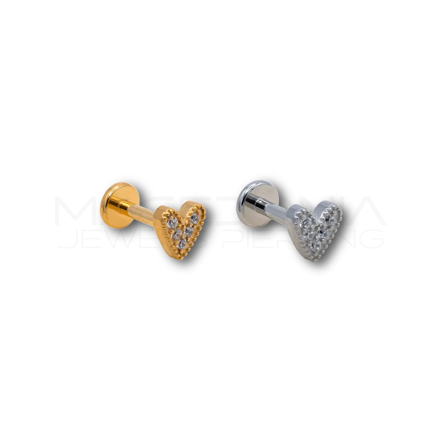 Romantico e brillante, il nostro piercing in acciaio chirurgico 316L combina eleganza e stile con la sua forma a cuore impreziosita da zirconi incastonati. Disponibile nelle colorazioni argento e oro, è perfetto per chi desidera un dettaglio luminoso e raffinato. Resistente e ipoallergenico, è ideale per lobo, helix, forward helix, conch, flat, tragus e labbro.