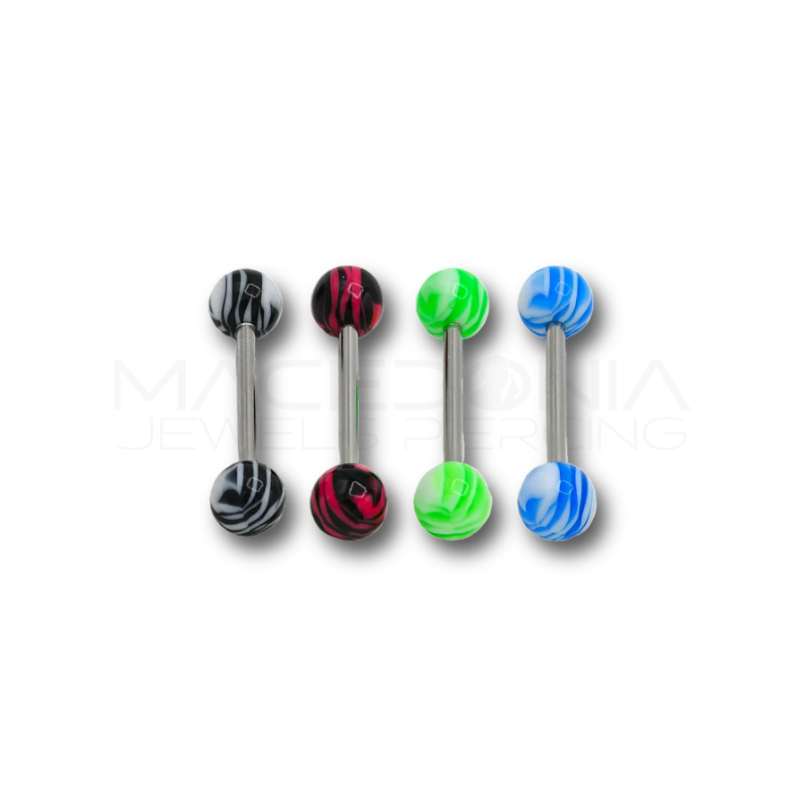 Barbell in acciaio chirurgico 316L con palline a fantasia zebrata (6 mm)