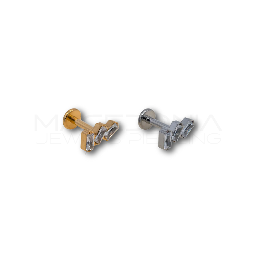 Piercing con Tre Zirconi Rettangolari in Acciaio Chirurgico 316L