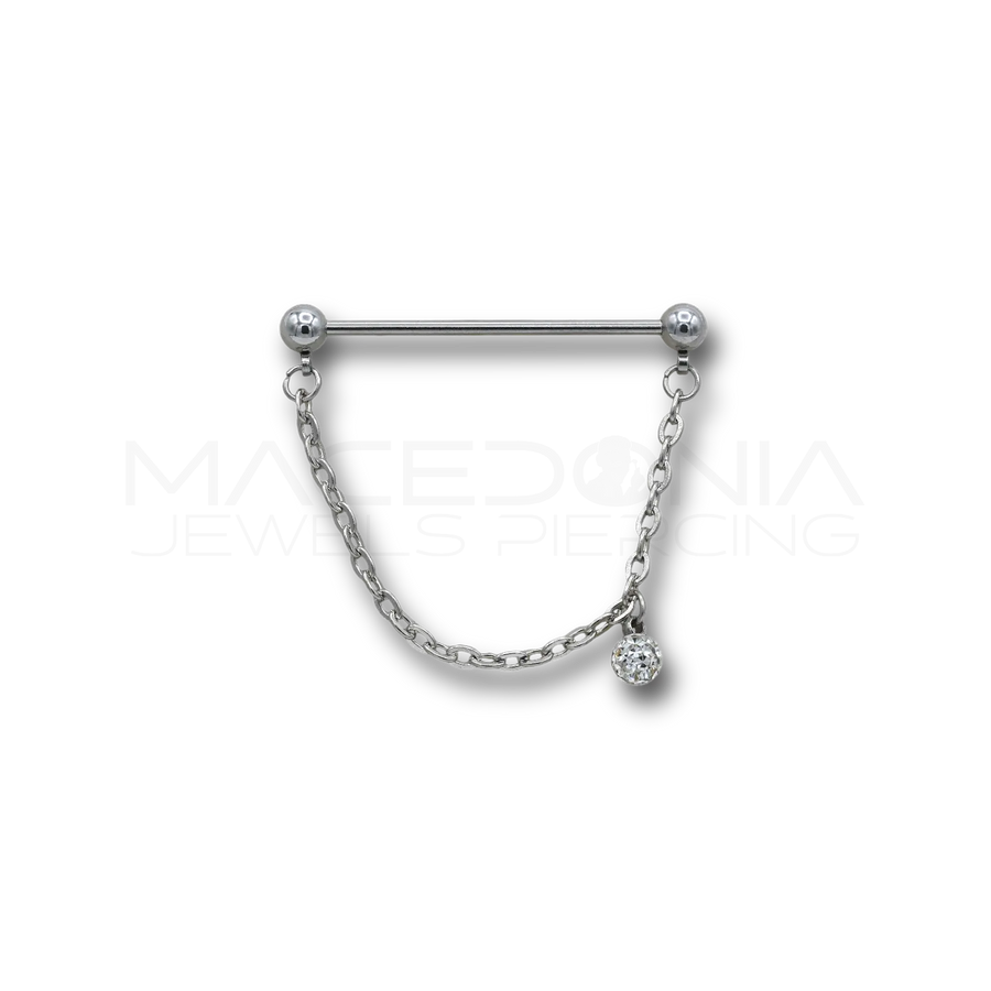 Barbell Industrial in Acciaio Chirurgico 316L con Catena e Zircone Bianco