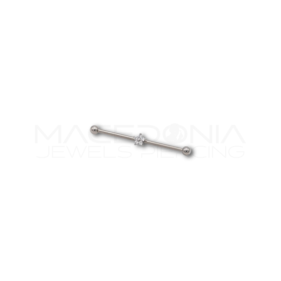 Barbell industrial in acciaio chirurgico 316L con fiore zirconato
