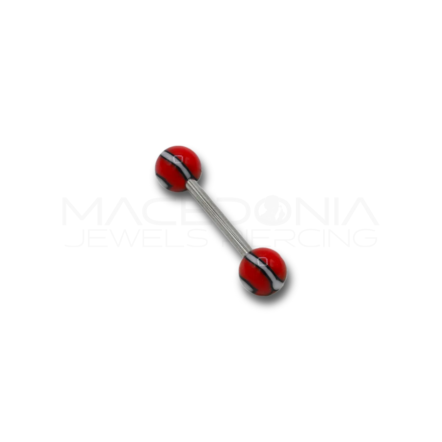Un barbell resistente e sicuro, ideale per chi cerca un gioiello originale e colorato. Realizzato in acciaio chirurgico 316L, ipoallergenico, la pallina striata nei colori rosso, bianco e nero aggiunge un tocco vivace e distintivo al tuo look.