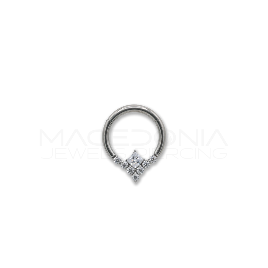 Elegante e luminoso, questo cerchietto in acciaio chirurgico 316L è decorato con zirconi brillanti e dotato di chiusura clicker pratica e sicura. Perfetto per valorizzare diversi piercing con stile e comfort.