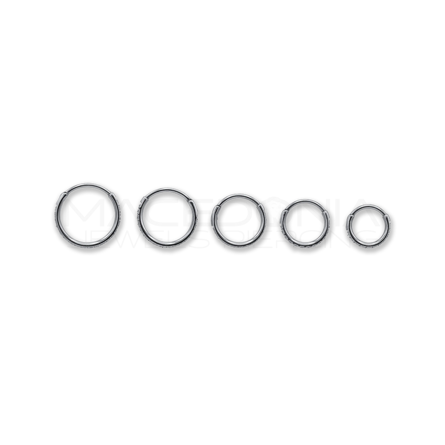 Cerchietto per nostril in Titanio G23 (il materiale più sicuro e leggero che puoi mettere sulla pelle). Il design è essenziale, ma la fila di zirconi incastonati gli dà quel glow elegante che si vede solo da vicino — e fa la differenza.