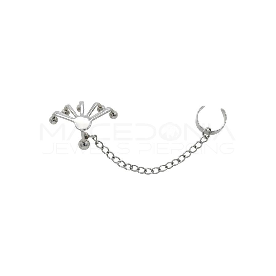 Orecchino con Catenina e Cerchietto a Cinque Sfere in Acciaio Chirurgico 316L