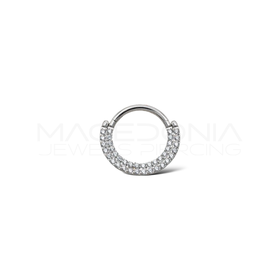 Questo piercing con chiusura clicker in acciaio chirurgico 316L è impreziosito da una corona di zirconi, che conferisce eleganza e brillantezza al tuo look. Realizzato in materiale di alta qualità, garantisce resistenza, sicurezza e comfort anche per le pelli più sensibili.