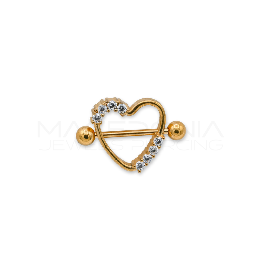 Piercing da Capezzolo in Acciaio Chirurgico 316L con Cuore e Zirconi