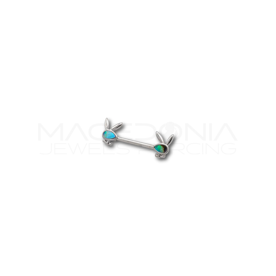 Piercing da Capezzolo in Acciaio Chirurgico 316L con Coniglietti e Pietre in Opale