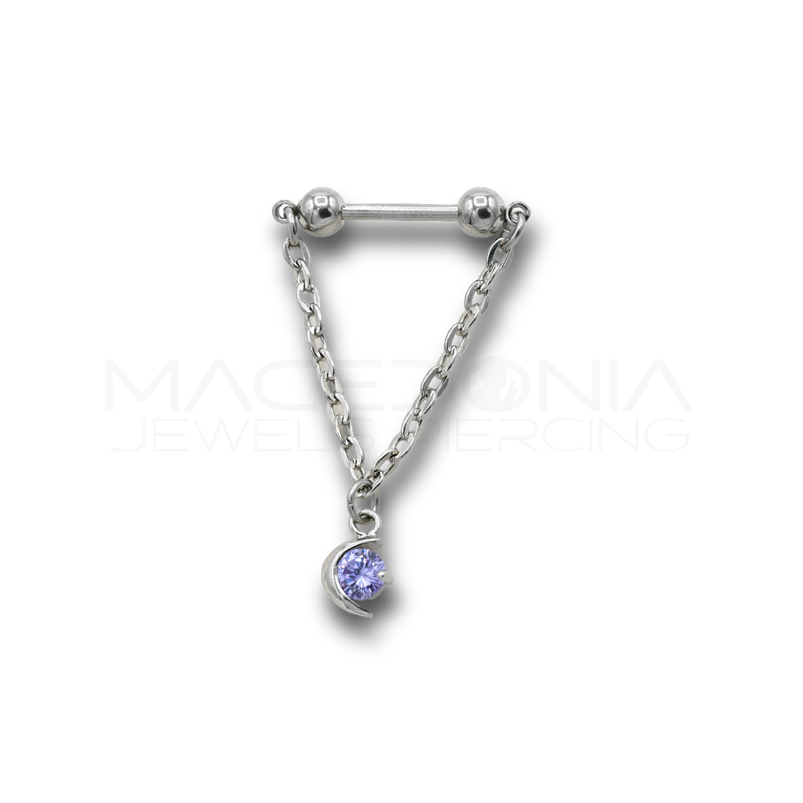 Piercing da Capezzolo in Acciaio Chirurgico 316L con Catenina e Luna Pendente