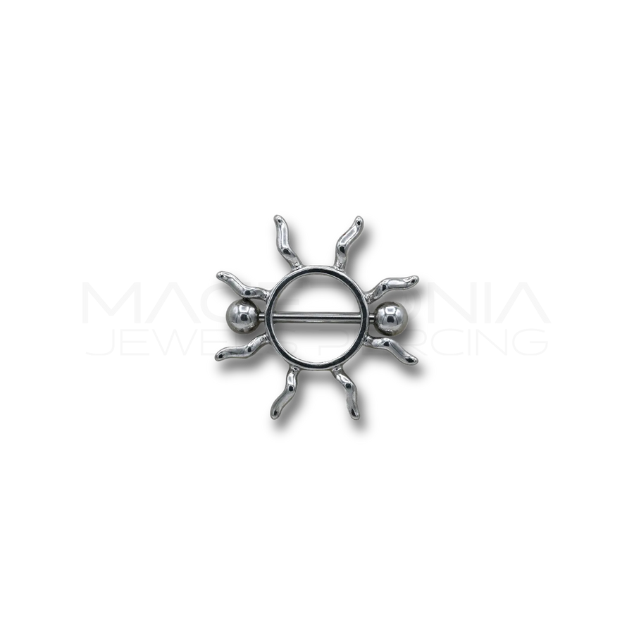 Piercing colore argento, in acciaio chirurgico 316L, stile Janet Jackson con sole. Disponibile in diverse misure.
